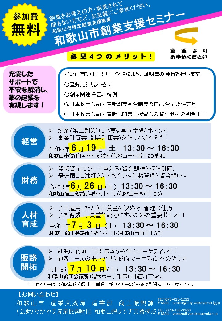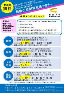 【受付終了】創業支援セミナー 6/19、6/26、7/3、7/10 全て13時半