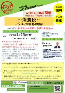 【ZOOM開催】消費税~インボイス制度の理解~ 1/14 14時