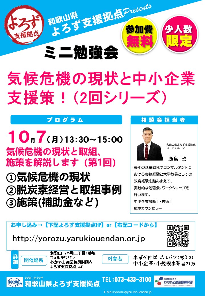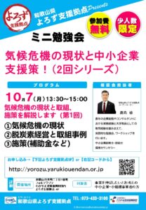 気候危機の現状と中小企業支援策!(2回シリーズ)① 10/7 13:30