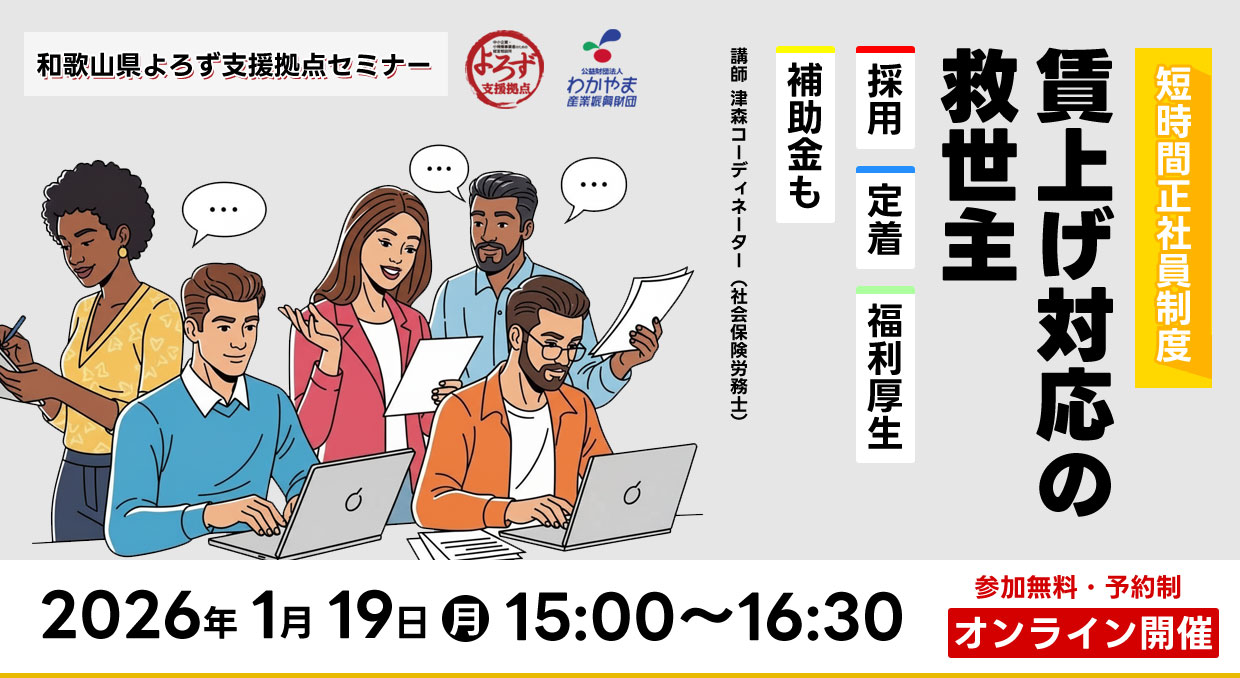 社労士 オンラインセミナー 「短時間正社員制度~採用・定着・福利向上、賃上げ対応の救世主!」 2026年1月19日(月)15:00~