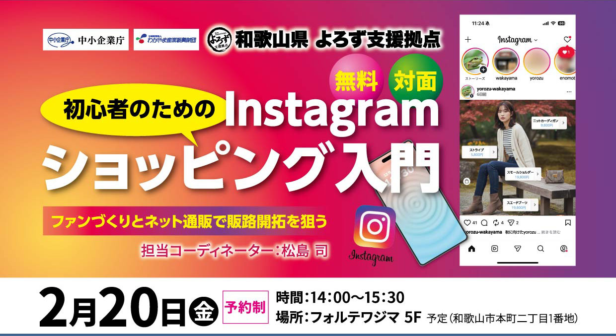 | セミナー・勉強会タイトル | SNS×EC無料セミナー 「初心者のためのInstagramショッピング入門」2026年2月20日(金)14:00~ |