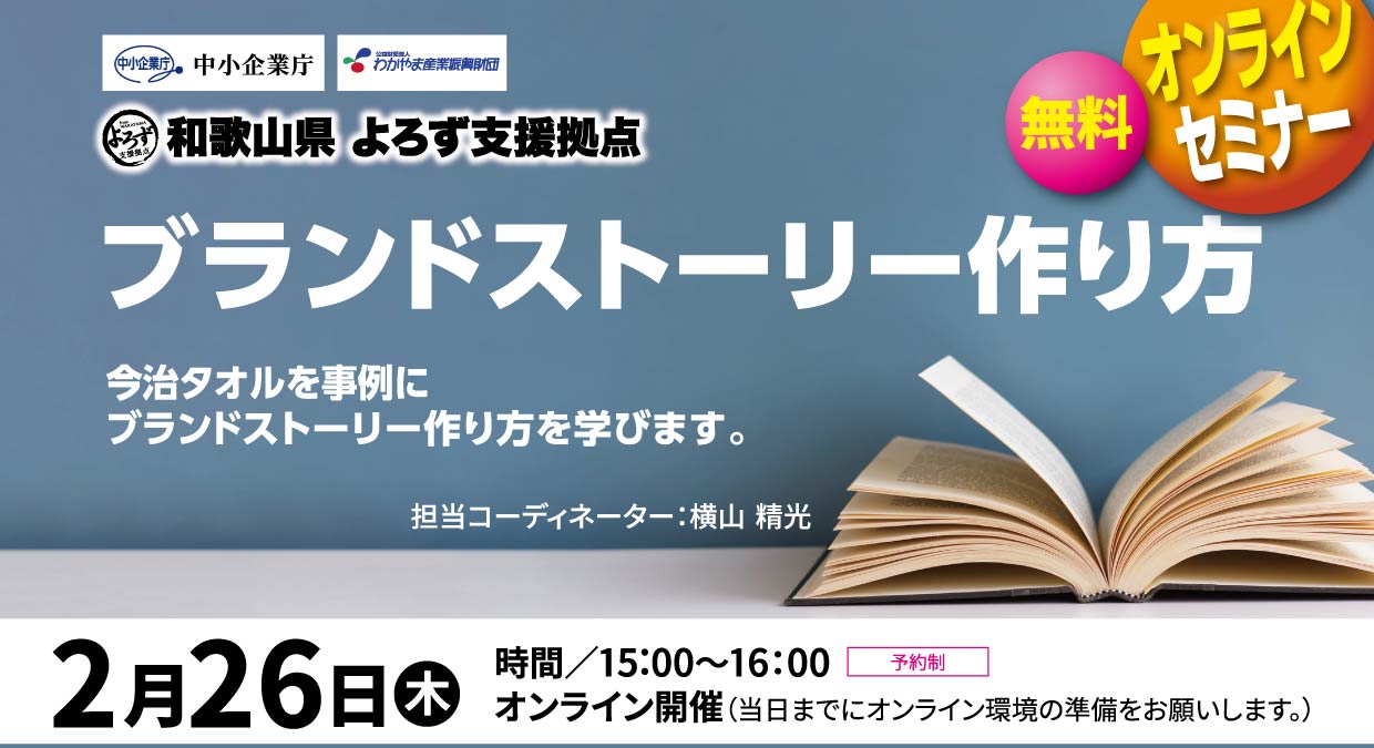 | セミナー・勉強会タイトル | 経営戦略無料オンラインセミナー「ブランドストーリーの作り方」 2026年2月26日(木)15:00~ |