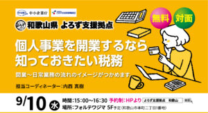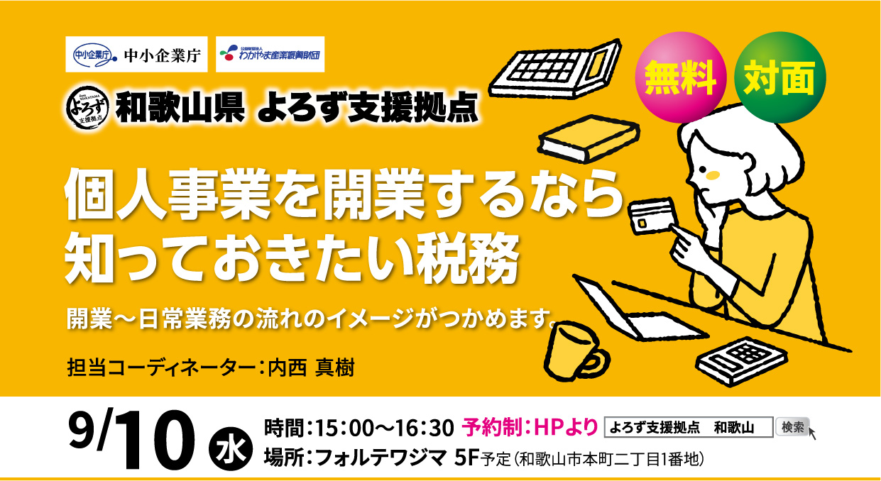 税務 セミナー「個人事業を開業するなら知っておきたい税務」9月10日(水)15:00~